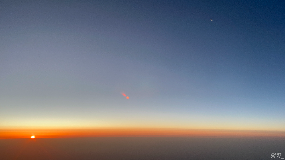 한국으로 돌아오는 비행기 안에서 찍은 해와 달의 공존!!!!!