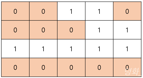 구멍이 뚫린 부분 : 0, 칸막이가 존재하는 부분 : 1